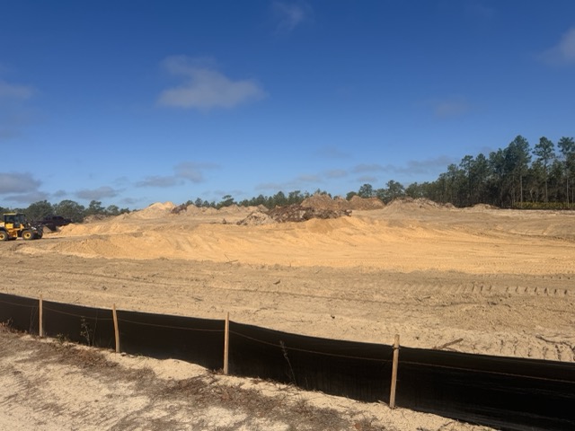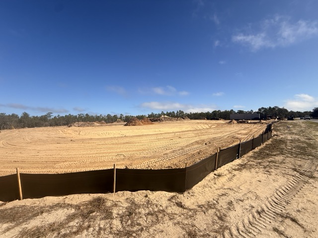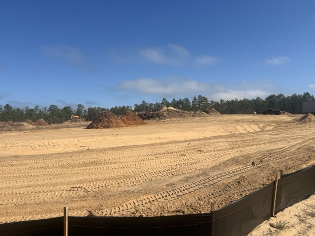 Work has also begun on the two water retention ponds required for the site. These ponds have been roughed in and are starting to take shape as part of the overall development of the property.